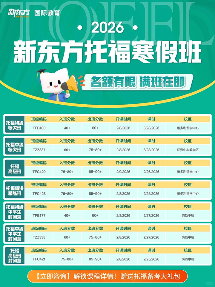 广州新东方托福寒假班来啦!